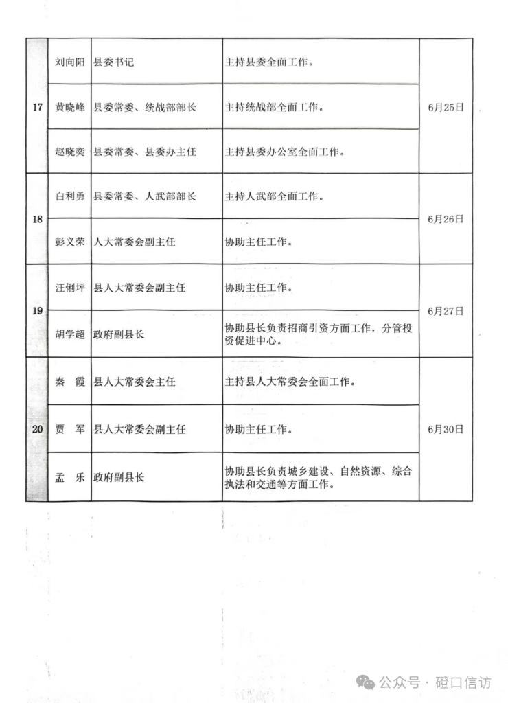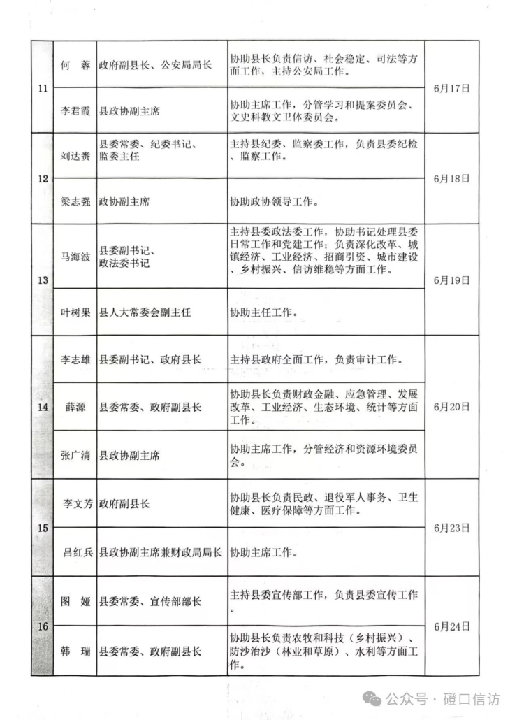 磴口縣2025年6月領導干部接訪下訪工作日安排