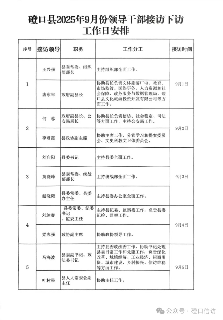磴口縣2025年9月份領導干部接訪下訪工作日安排