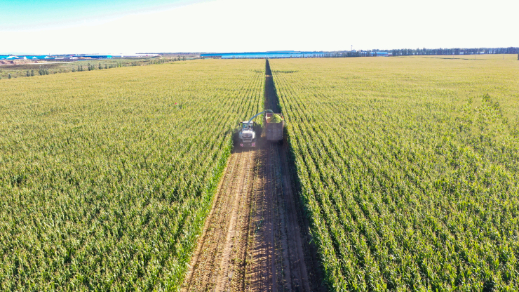 十多年來,磴口縣依托烏蘭布和沙漠潔凈的環境,吸引蒙牛、圣牧等知名乳企在境內落戶,生產高品質牛奶。青貯玉米是奶牛的主要飼料,經過多年公司+基地+農戶的訂單模式種植,實行統一管理、統一收割、統一驗質、統一收購,產出的青貯玉米品質優良?,F已形成了規?;?、產業化青貯玉米種植生產體系,在帶動當地農業產業化升級,農牧業增效、農牧民增收,促進鄉村振興方面發揮了重要作用。