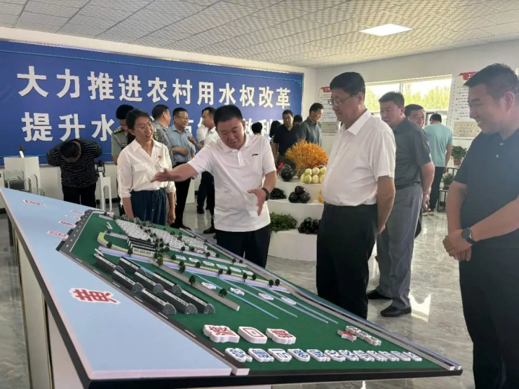 調研組一行深入渡口鎮黨建引領現代農業示范園區,進行觀摩指導。隨后,在渡口鎮黨建引領綜合示范展廳中觀摩了渡口鎮農副產品展臺、節水控水老物件、土壤展臺、渡口鎮黨建引領現代農業示范園區沙盤、農作物種子展臺,詳細了解了當前特色農產品的種植和生產情況、節水控水工作、渡口鎮產業布局,渡口鎮土壤的質地結構等,全面展示了渡口鎮鄉村振興的堅實物質基礎,更承載著新時代農民增收共富的希望。