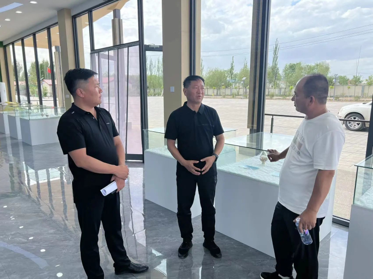劉永剛來到磴口華萊士瓜特色產業示范區,通過實地查看、現場交流的方式,詳細了解示范區建設情況。隨后,來到磴口華萊士瓜特色產業示范區智慧展廳,詳細了解華萊士瓜的種植銷售情況、運行模式及華萊士產業發展前景。通過實地參觀,劉永剛對華萊士瓜特色產業示范區的建設、溫室大棚種植規模、產量品質給予了高度評價。