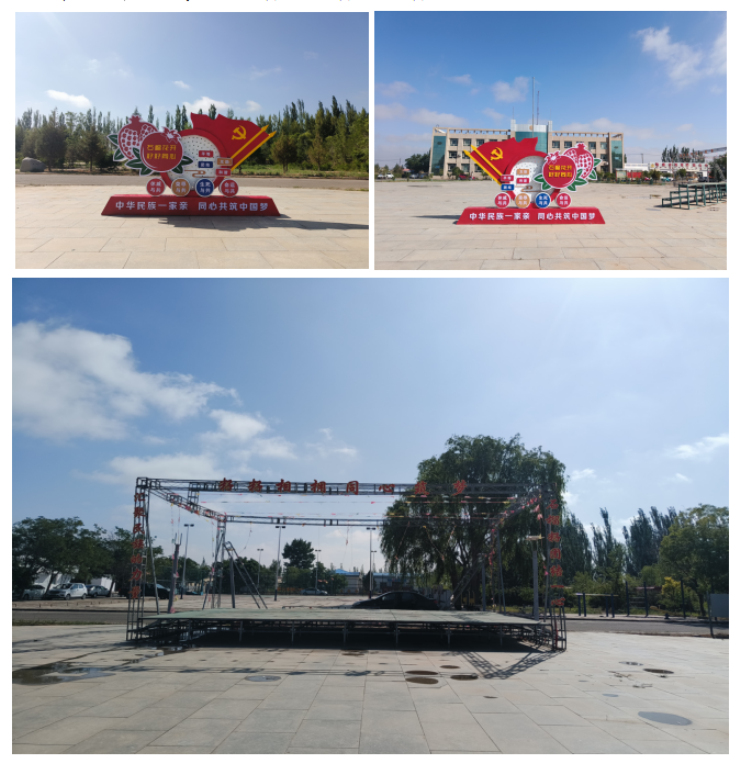 主題廣場以鑄牢中華民族共同體意識為主線,增設和提升改造相關設施,新增廣場舞展臺標語、“紅石榴雕塑”、宣傳欄等12處景觀節點,將群眾休閑娛樂與民族團結相融合,以鮮明的主題文化特色、創新的宣傳教育載體,促進各民族群眾在中華民族大家庭中像石榴籽那樣緊緊抱在一起,共同建設偉大祖國,共同創造美好生活,確保鑄牢中華民族共同體意識實現“有形、有感、有效”。