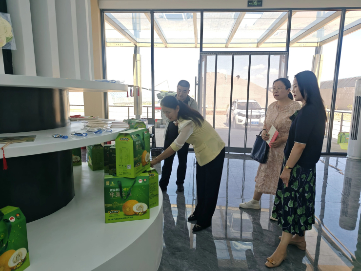 李君霞一行來到磴口華萊士瓜特色產業示范區,通過實地查看、現場交流的方式,詳細了解示范區建設情況,華萊士瓜的種植銷售情況,現在發展華萊士產業所面臨的問題。實地參觀后,進行現場面談交流、記錄,華萊士產業發展情況,華萊士瓜特色產業示范區發展需要提供幫助之處等。