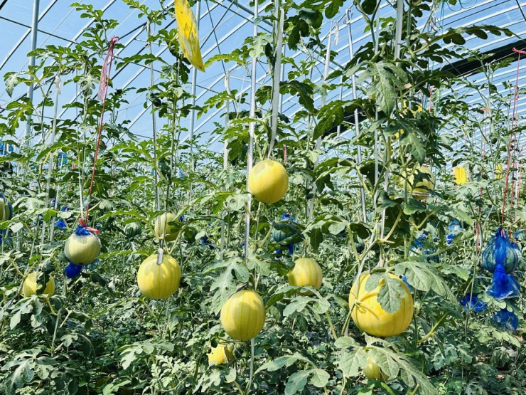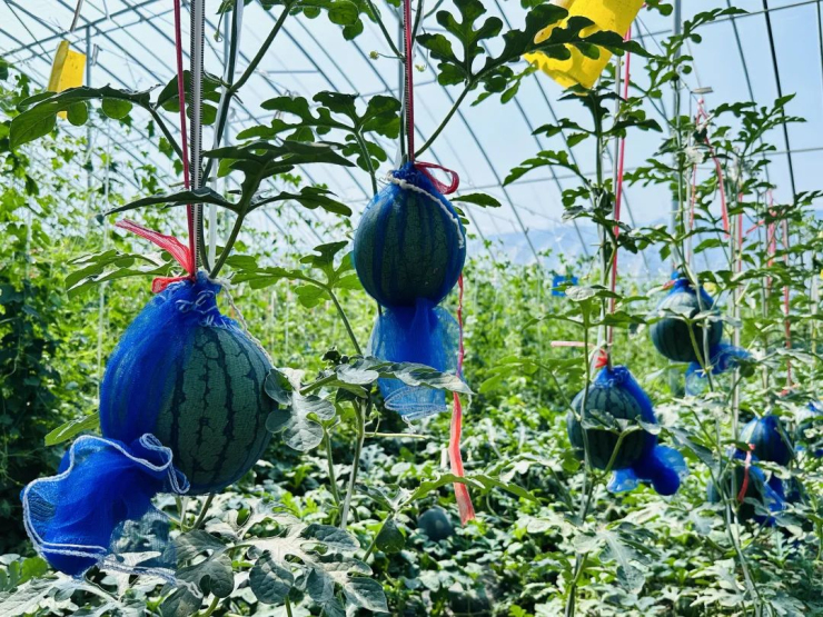 “大棚內種植的西瓜的糖度能達到十二三,皮薄汁多、又脆又沙,等到收瓜的時候一般都是要排號才能買到嘞。”瓜農信心滿滿地說。壩楞村以農業特色優勢產業為引領,采取“支部引領+企業+種植戶”模式,先后引進吊蔓西瓜、巨型西瓜、中玉1號、中彩3號等10多個品種,不斷發展壯大產業園區。同時,在西瓜種植過程中大膽嘗試,探索吊蔓栽培,一改以往趴地種植的“傳統”,讓西瓜在空中生長結果。這樣的種植方式,既避免西瓜和地面接觸生病,還提高了土地利用率,西瓜的品質也得到了提高,皮薄肉厚、含糖量高、品質優良,銷路根本不用愁,吊蔓種植技術成了瓜農致富的新途徑。