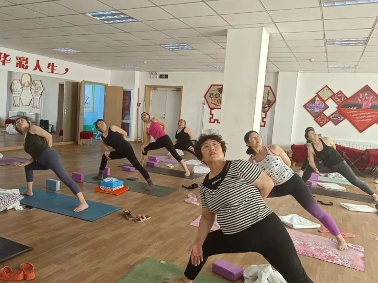 清晨,沐浴著初升的朝陽,58歲的梵韻瑜伽隊的隊長劉文麗帶領各民族退休老年人開始了充實快樂的一天。伴隨著悠揚的音樂,老年瑜伽隊的隊員們正在晨曦中盡情舒展軀體。為滿足社區老年群體日益增長的精神文化需求,南開社區三樓開設了瑜伽班,受到了轄區眾多老年女性朋友的熱烈響應。在南開社區服務中心一樓,有一個50平米左右的棋牌活動室,是轄區老人下棋、打牌、休閑娛樂的好去處,也是長者們切磋棋藝、增進友誼、陶冶情操的好平臺。家住和諧小區的張大爺開心地說:“從我家到活動室只有幾分鐘,退休后,我經常來這兒消遣,為我們的晚年生活增添了幸福。”現在,南開社區黨總支以老黨員為骨干,組建了多支老年文體活動隊,以磴口縣老年大學等為依托,開展適合老年人的各種文體娛樂活動,豐富銀發的精神世界和文化生活,黨建引領“夕陽紅”,讓社區“養老”變“享老”。