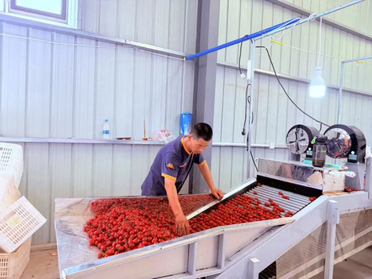 “我們種植的番茄果苗區(qū)別于大田番茄和市面上的其他品種“小番茄”,可結(jié)12層果實(shí),每七天就能迎來一茬豐收,”大棚負(fù)責(zé)人王欣榮笑容滿面地說,“從七月到十一月,畝產(chǎn)預(yù)計可達(dá)7000至9000斤。我們還承包了壩楞村的2個倉儲車間,進(jìn)行嚴(yán)格的篩選與包裝,確保每一顆送達(dá)‘北上杭’等大都市的果實(shí)都飽滿多汁,品質(zhì)上乘,按照當(dāng)下市場價格計算,畝均毛利潤在48000元左右,純利可達(dá)26000元,收益相當(dāng)可觀。”