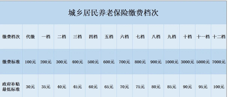 城鄉居民養老保險繳費檔次