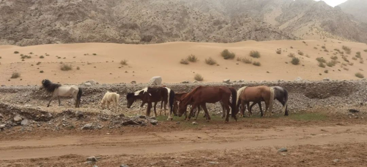看到馬群在悠閑自在地覓食,據說附近經常有石羊出沒,也不怎么懼怕人了。