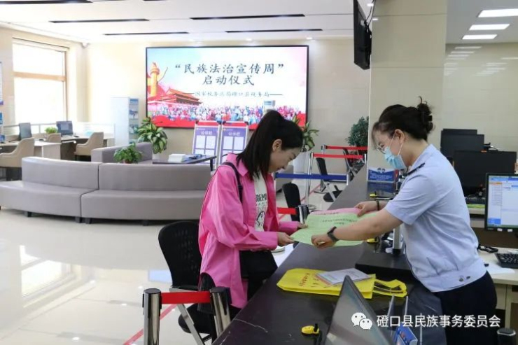 三是全面啟動,營造良好宣傳氛圍。在辦稅廳服務廳舉行“民族政策宣傳月”和“民族法治宣傳周”啟動儀式,向納稅人發放宣傳手冊、宣傳資料、手提袋,宣傳講解民族政策,普及民族理論知識,讓各民族納稅人繳費人在辦理涉稅業務過程中潛移默化的鑄牢中華民族共同體意識,營造了“中華民族一家親,同心共筑中國夢”的良好氛圍。