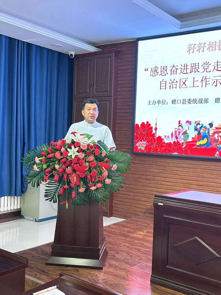 縣委常委、統(tǒng)戰(zhàn)部部長、政府黨組成員孟樂強(qiáng)調(diào),一是做鑄牢中華民族共同體意識的“守護(hù)者”,堅持理論武裝頭腦、夯實共同政治思想基礎(chǔ)。要始終把“堅持正確政治方向、凝聚思想共識”放在首位,提高做好民族工作的本領(lǐng),這就要求你們具有較高的政治站位和一定的理論素養(yǎng),不斷提升自身履職能力和工作水平,充分引領(lǐng)發(fā)揮各族群眾優(yōu)勢,為全面落實習(xí)近平總書記交給內(nèi)蒙古的五大任務(wù)和全方位建設(shè)“模范自治區(qū)”獻(xiàn)計出力。二、做中華優(yōu)秀傳統(tǒng)文化的“傳承者”,發(fā)揮引領(lǐng)示范作用、形成全社會參與的合力。要傳承發(fā)展中華優(yōu)秀傳統(tǒng)文化,深入挖掘治理烏蘭布和沙漠、開挖總干渠總排干、興修三盛公水利工程以及兵團(tuán)戰(zhàn)士屯墾戍邊等歷史史實背后的文化內(nèi)涵和精神品質(zhì),以標(biāo)志性建筑“同心鎖”作為磴口縣共享的中華文化符號和民族形象,打造和樹立磴口縣土生土長的“石榴籽”,引領(lǐng)各族群眾大力弘揚(yáng)和傳承“中華民族永昌、中華民族共同體永固、中華文明永恒”為內(nèi)核的“同心精神”。進(jìn)一步完善鑄牢中華民族共同體意識宣傳教育常態(tài)化機(jī)制,將鑄牢中華民族共同體意識納入干部教育、黨員教育、國民教育、社會教育,引導(dǎo)各族群眾牢固樹立正確國家觀、歷史觀、民族觀、文化觀、宗教觀。切實帶動所聯(lián)系的各族群眾守望相助、團(tuán)結(jié)奮斗,展現(xiàn)各族群眾在經(jīng)濟(jì)社會發(fā)展中的新作為。三、做“感恩奮進(jìn)跟黨走,在全方位建設(shè)模范自治區(qū)上作示范”的“踐行者”,堅持學(xué)思用貫通、知信行統(tǒng)一。要把讀書學(xué)習(xí)成果切實轉(zhuǎn)化為推動“圍繞中心、服務(wù)大局”的根本動力,轉(zhuǎn)化為推動具體工作的實踐。結(jié)合學(xué)習(xí)貫徹習(xí)近平新時代中國特色社會主義思想主題教育,把調(diào)查研究貫穿到學(xué)習(xí)調(diào)研全過程,貫穿到習(xí)近平總書記交給內(nèi)蒙古五大任務(wù)全過程,貫穿到全方位建設(shè)“模范自治區(qū)”全過程。要錨定市委建設(shè)“五高五區(qū)”目標(biāo)定位,聚焦縣委縣政府發(fā)展目標(biāo),全力推動鑄牢中華民族共同體意識工作走深走實,不折不扣的完成好習(xí)近平總書記交給內(nèi)蒙古的“五大任務(wù)”和全方位建設(shè)“模范自治區(qū)”貢獻(xiàn)力量,共同譜寫現(xiàn)代化磴口縣建設(shè)新篇章。