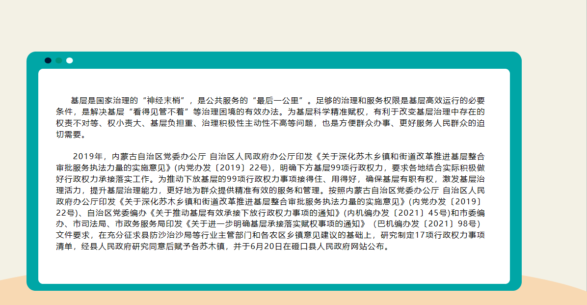 《關于增加蘇木鎮承接自治區賦予蘇木鎮和街道行政權力事項涉及草原類行政權力事項清單的通知》相關政策解讀
