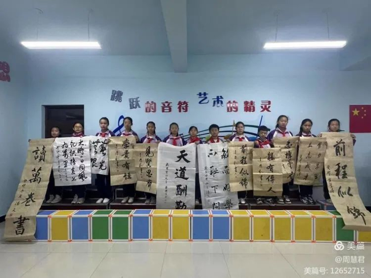 本次活動,是為了認真貫徹習近平總書記在二十大關于文化興國的偉大戰略思想,認真貫徹黨的德智體美勞的教育方針,認真開展"五進活動"中的″大手拉小手書畫進校園"的活動。這次活動中,書畫家們在校領導的引領下,首先深入學校書畫專用教室對同學們的書畫過程進行了全面指導。活動中看到磴口縣三完小書畫二課興趣小組的同學們書畫基礎好,悟性高,書畫家們對同學們的握筆坐姿、筆畫書寫、結構布局、繪畫構圖等方面進行了示范講座,師生們受益匪淺。最后,書畫家們揮毫潑墨,給三完小師生留下50多幅書畫作品。活動結束后,書畫家們和學校領導、老師和同學們一起合影留念。