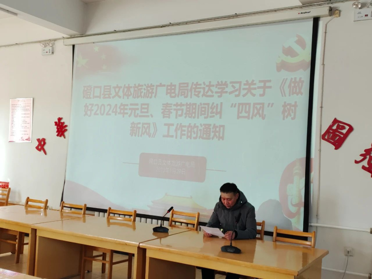 春節假期將至,為進一步強化紀律規范意識,認真落實中央八項規定精神,防范和抵制各類“節日腐敗”和“四風”問題,營造廉潔文明過節的濃厚氛圍,1月29日,磴口縣文體旅游廣電局組織召開了節前廉潔教育警示會。局領導班子成員和全體黨員干部參加了會議。