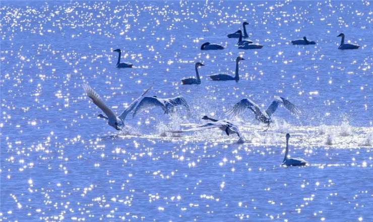 首批白天鵝抵達磴口縣。