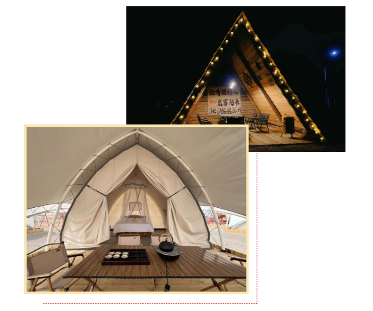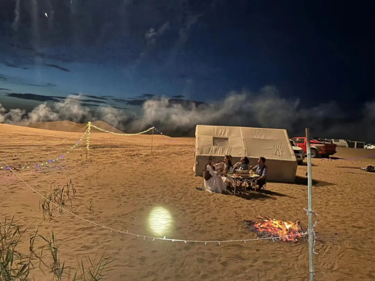 還可以在沙漠星空帳篷露營,仰望星空,獨享一分靜謐。夜空中的星星在眨著眼,美好也會悄悄降臨在你身邊。