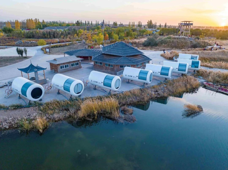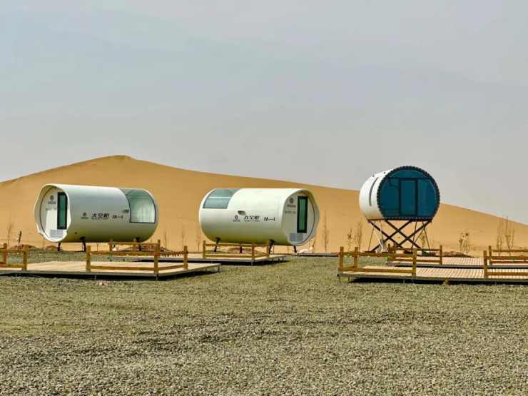在烏蘭布和沙漠的懷抱中,住太空艙,夜觀宇宙星河、闌珊人間,露營野炊,一首音樂、一叢篝火、約三五好友,融入自然,感受生活。