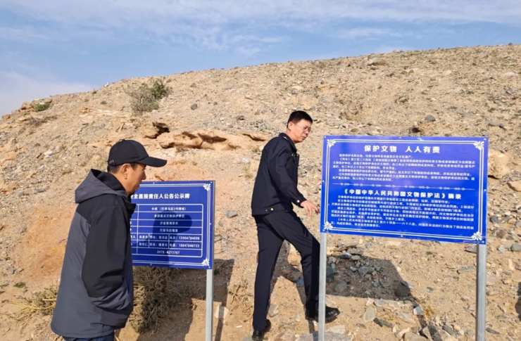 檢查組先后到窳渾古城、雞鹿塞城址、巴音烏拉石板墓群、格爾敖包溝巖畫、默勒赫圖溝巖畫、布都毛道溝古城址、溝心廟漢墓群及遺址等文物保護單位,重點對文物“四有”工作開展情況、文物安全直接責任人公示牌、文物保護區內有無違規違建等情況進行了檢查,隨后到中心查看了文物“四有”檔案、文物安全日常巡查記錄及文物保護各項工作制度,指出問題并提出整改意見。