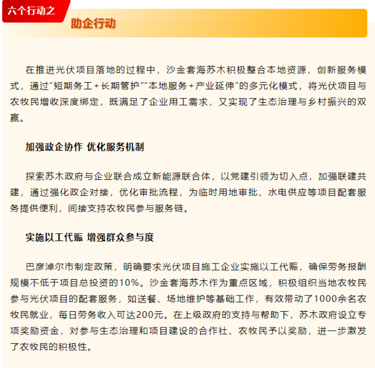 六個行動 | 助企行動?沙金套海蘇木光伏項目促增收