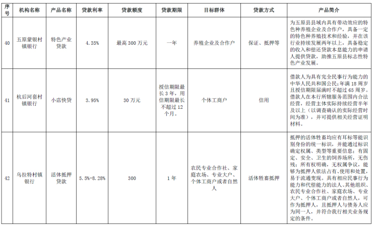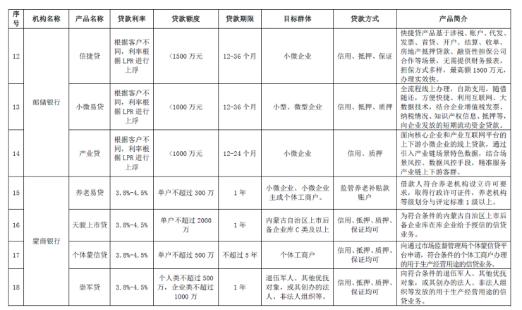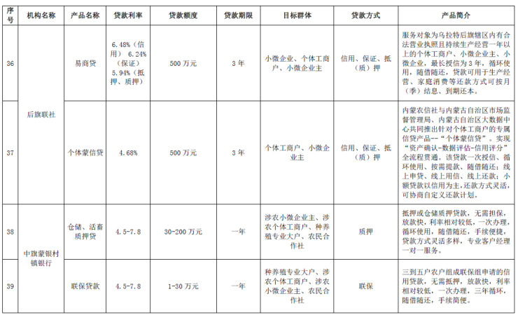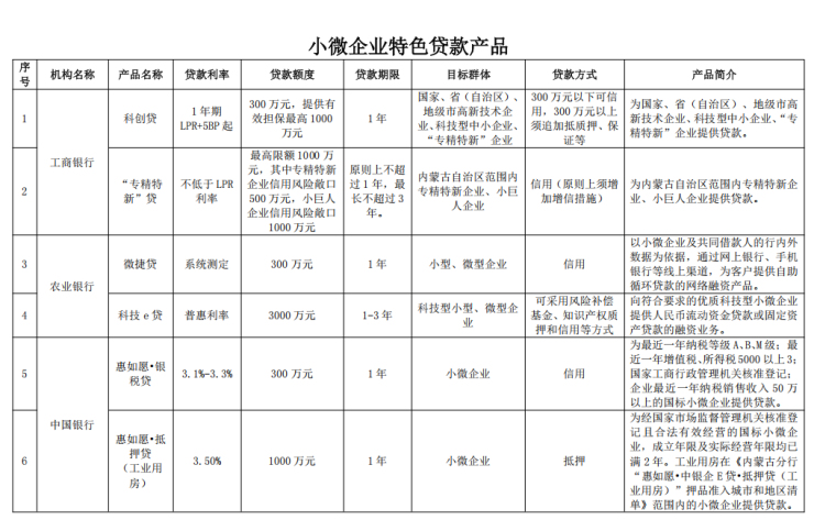 為深入貫徹落實黨中央、國務院關于支持小微企業發展的決策部署,切實緩解小微企業融資難和銀行放貸難問題,助力實體經濟高質量發展,按照巴彥淖爾市誠信建設工程工作部署,巴彥淖爾市支持小微企業融資協調工作機制辦公室積極引導銀行業金融機構創新普惠金融產品、優化服務流程、降低融資成本,組織轄區各銀行業金融機構開發了多種面向小微企業特色信貸產品,全面提升小微企業金融服務的覆蓋率、可得性和滿意度,為我市小微企業健康發展提供精準金融支持,現將轄區內銀行業金融機構小微企業特色貸款產品公告如下。