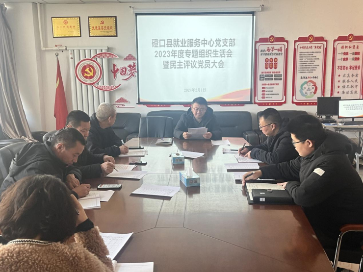 按照磴口縣委學習貫徹習近平新時代中國特色社會主義思想主題教育領導小組辦公室《關于第二批主題教育單位基層黨組織召開專題組織生活會和開展民主評議黨員的通知》文件要求,2月1日,磴口縣就業服務中心黨支部召開黨組織生活會暨民主評議黨員大會,在職黨員參加會議。