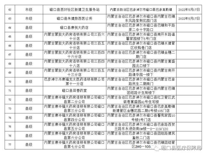 磴口縣“兩定”醫(yī)藥機(jī)構(gòu)認(rèn)定結(jié)果公示