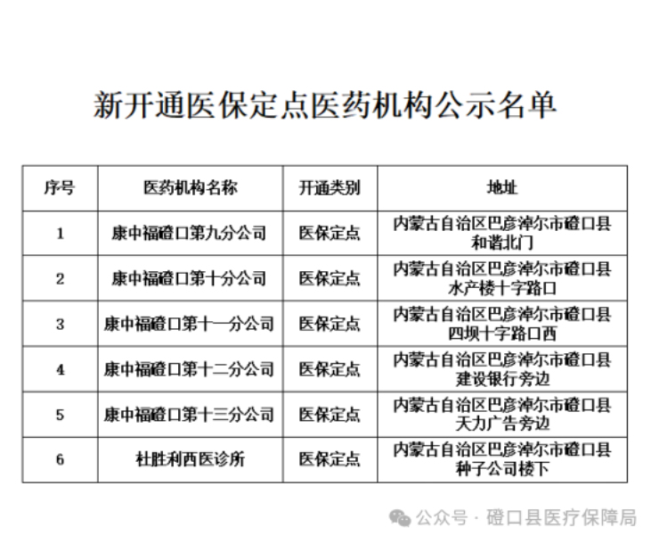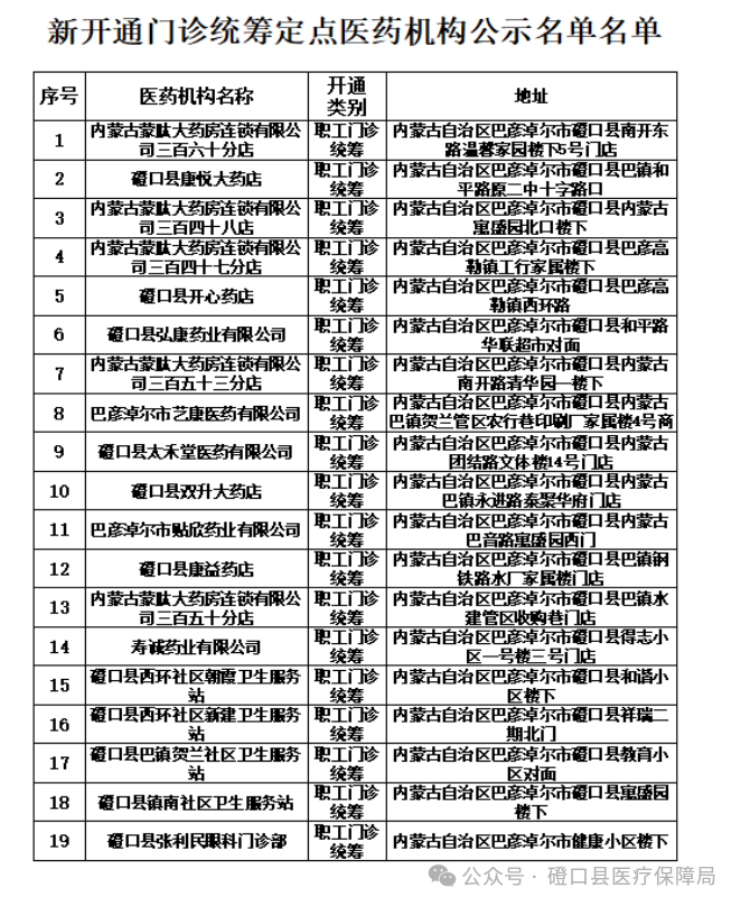 附件1:巴彥淖爾市磴口縣新增開通門診統(tǒng)籌定點醫(yī)藥機構公示名單