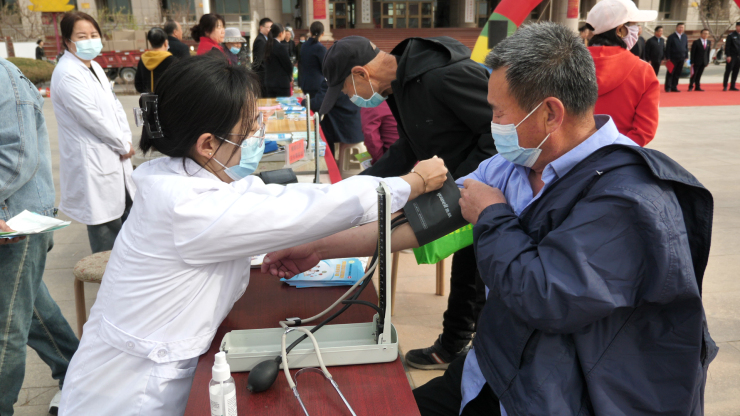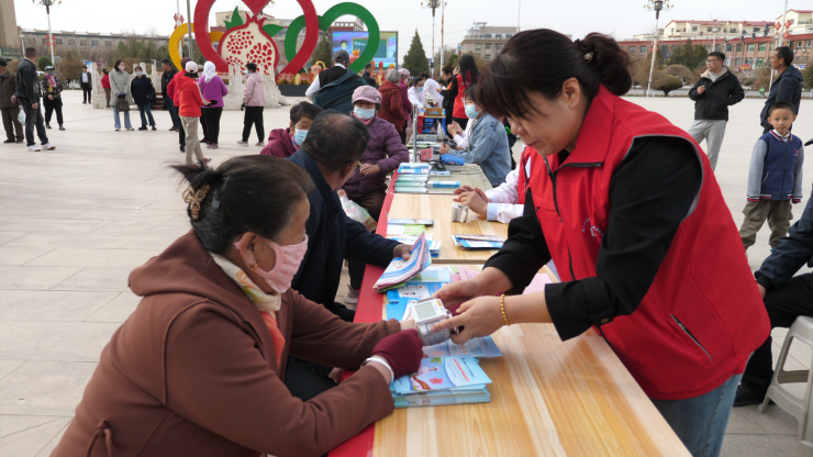 康中福連鎖藥店、國大連鎖藥店、磴口縣人民醫院、磴口縣中蒙醫院、磴口縣婦幼保健院、巴鎮社區衛生服務中心也積極參與此次宣傳活動,為現場群眾進行血壓、血糖、心率測量等義診服務。