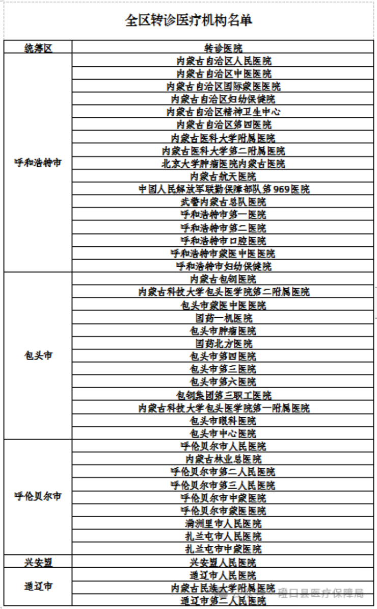 2.跨省異地就醫轉診轉出醫療機構:區內三級醫保定點醫療機構??缡∞D診的審批醫療機構:詳見附件1