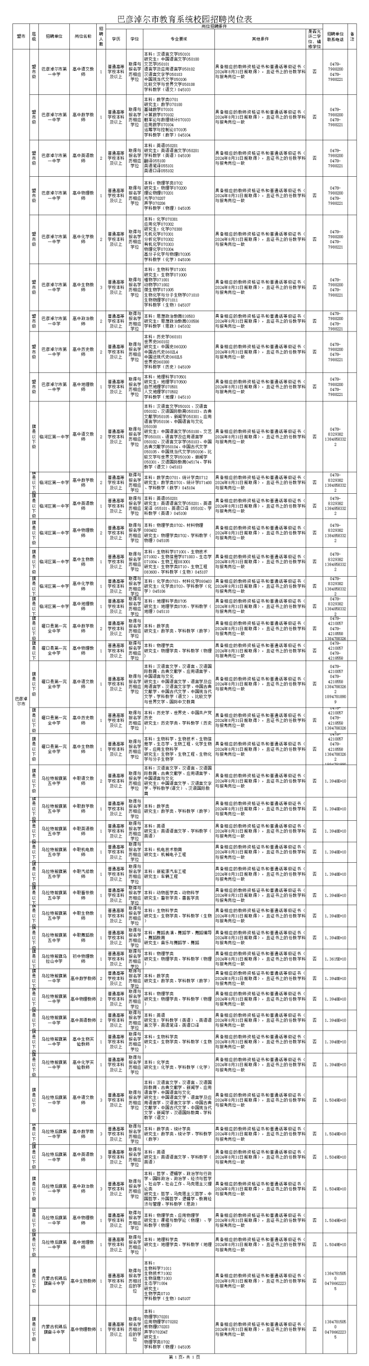 招聘崗位和具體要求詳見《巴彥淖爾市教育系統校園招聘崗位表》(見附件1)。