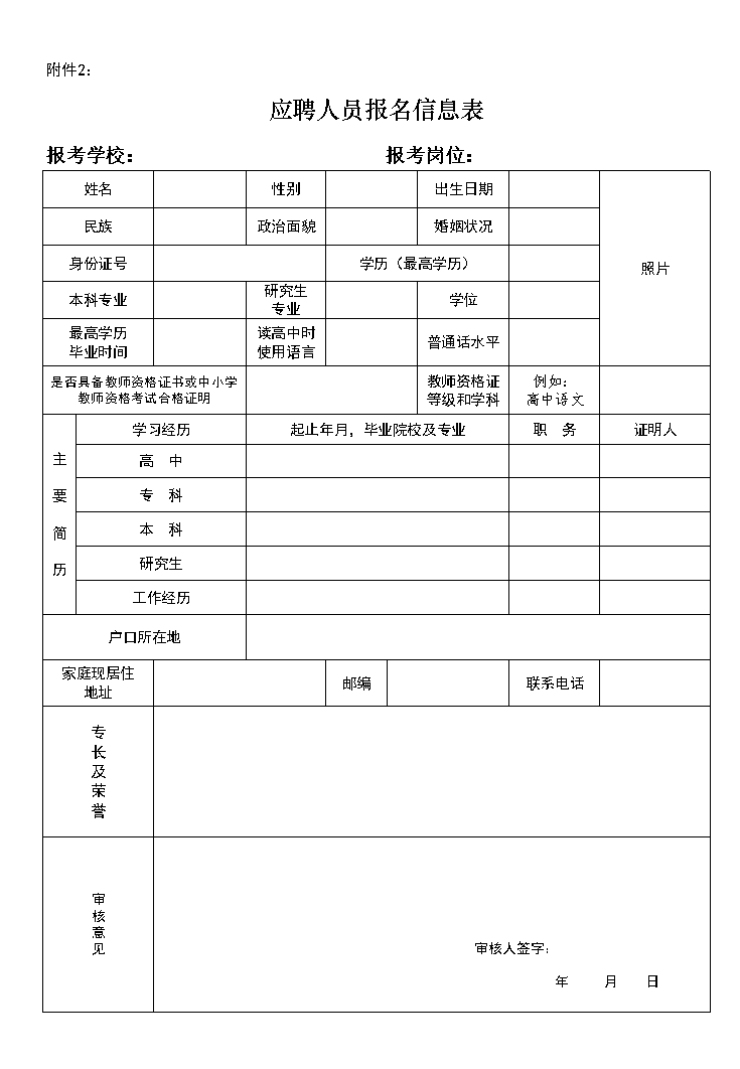 1.應聘人員提交《應聘人員報名信息表》一份(見附件,從網上下載打印填寫或現場填寫,須準備近期正面1寸免冠彩色照片1張)。