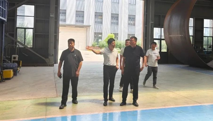 李志雄一行實地參觀了光大公司風機塔筒和光伏支架生產車間,公司董事長劉建彬就產業布局、技術研發、風機塔筒和光伏支架制造及生產工藝流程等相關情況進行介紹。